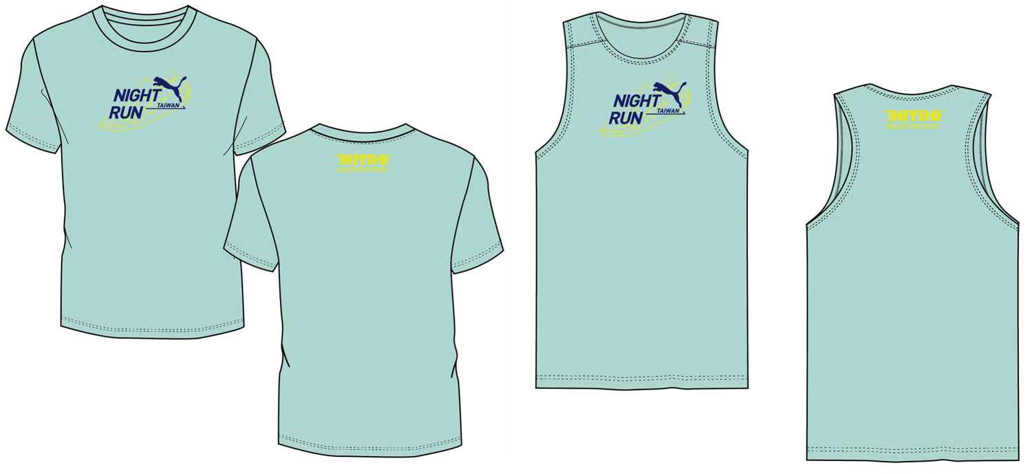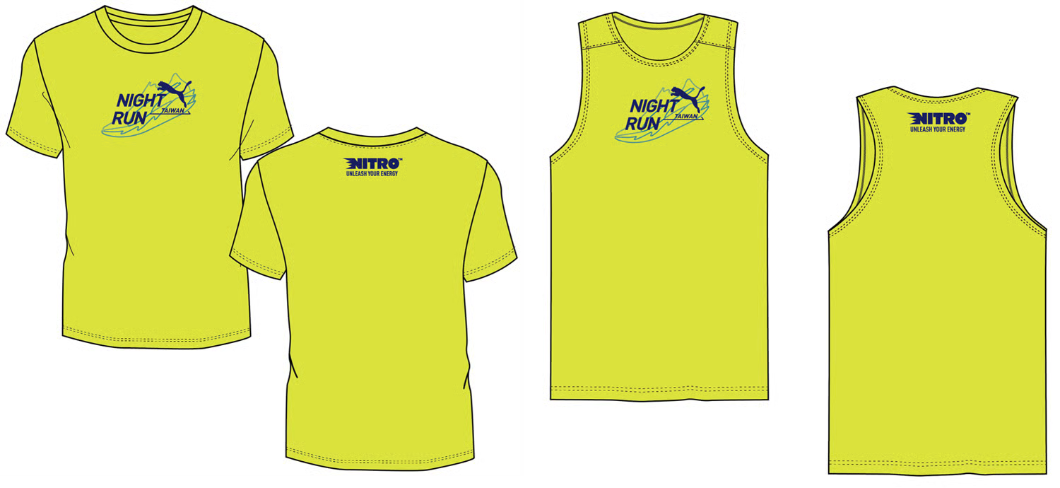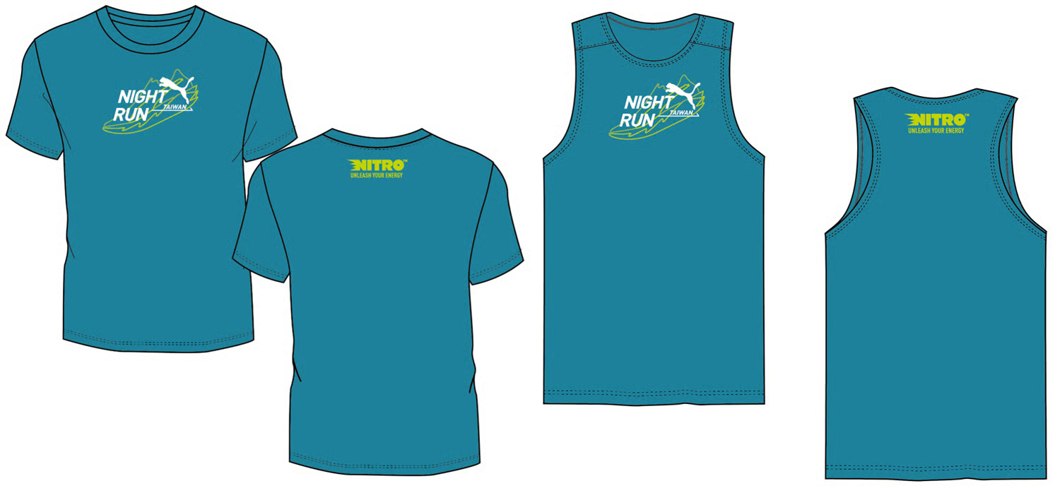 參賽贈品- PUMA 螢光夜跑紀念賽衣(市價980元)-短袖T恤及背心款式任選