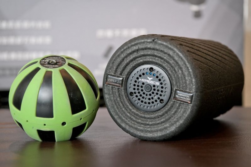 HYPERSPHERE 極速按摩球、Vyper By Hyperice 2.0 極速震動滾筒有三段式震動可調整。(圖片來源:運動筆記/徐拔)