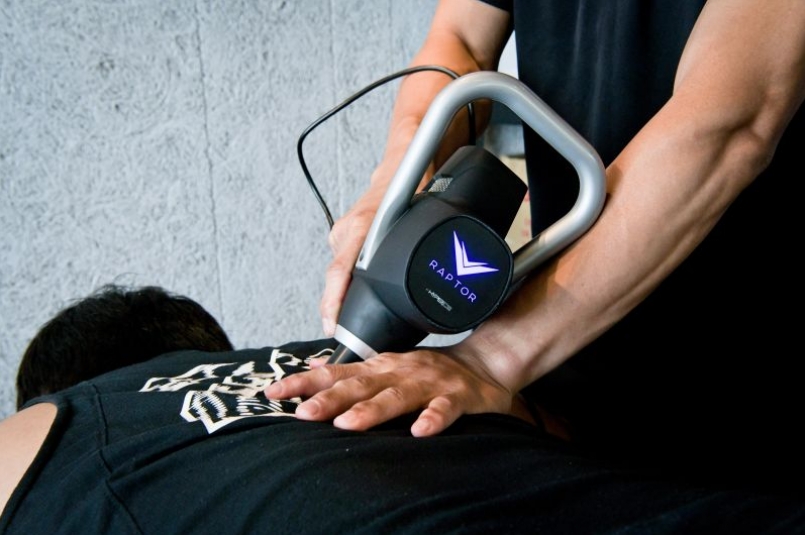 舒緩效果最確實也最有效率,震動感覺強烈,單價較高,需要他人協助,在有熊科技運動按摩工作室有一整套的療程。