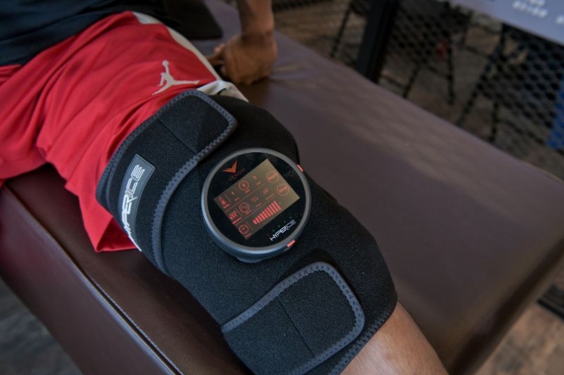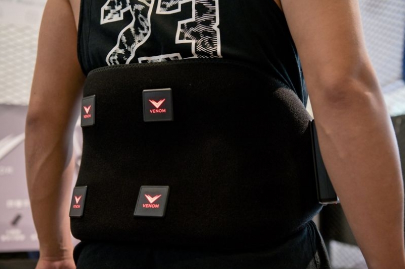 VENOM 熱能震動器可以調整頻率、溫度等項目,圖為膝蓋款。(圖片來源:運動筆記/徐拔)
