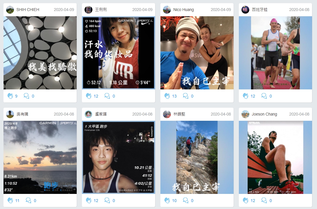 上傳每日照片、幫別人拍手、被拍手都可以獲得點數 (來源:運動筆記截圖)