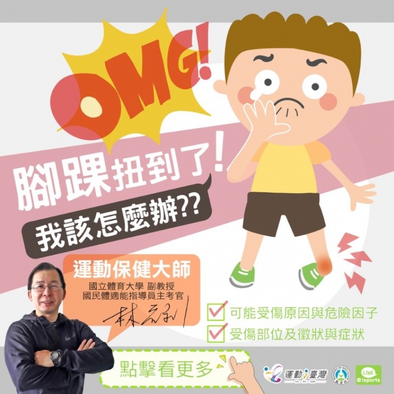 腳踝扭傷是很常見的運動傷害,舉凡爬山、溯溪、打球、跑步、跳舞甚至走路逛街,都有可能發生。若發生在爬山時或是郊區,無法立即就醫,該如何研判扭傷的程度?又該如何做正確的處理,減緩患部的不適,就讓林晉利老師告訴你。