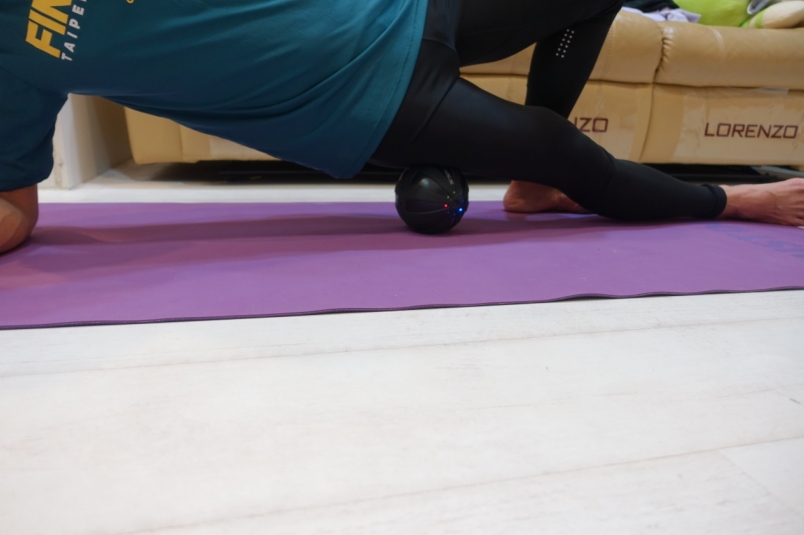 髂腰肌、股四頭肌比較不容易透過徒手按摩或滾筒達到放鬆效果,極速按摩球可以獲得更深層的放送與按摩。(圖片來源:吳俊毅)