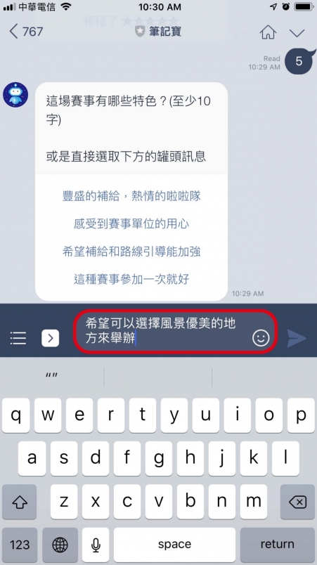 ?當您完成面向的評分,筆記寶會詢問「這場賽事有哪些特色」?