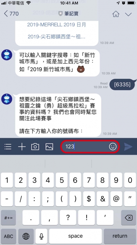 ?注意:只接受一組號碼布,數字之間不要有其他符號