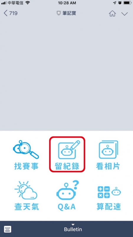 首先請用手指輕觸 Line 下方功能表中間的《留紀錄》功能圖示: