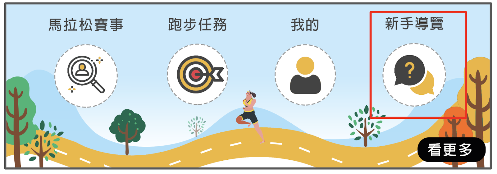 【跑步吧】的其中的一個功能一《新手導覽》,如果你是剛加入跑步吧可以看一下導覽,就會更了解怎麼操作相關功能,我們提供核心功能快速入口~