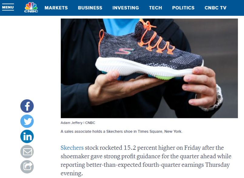SKECHERS 2019年第一季度盈利預測,遠高於華爾街預期。
