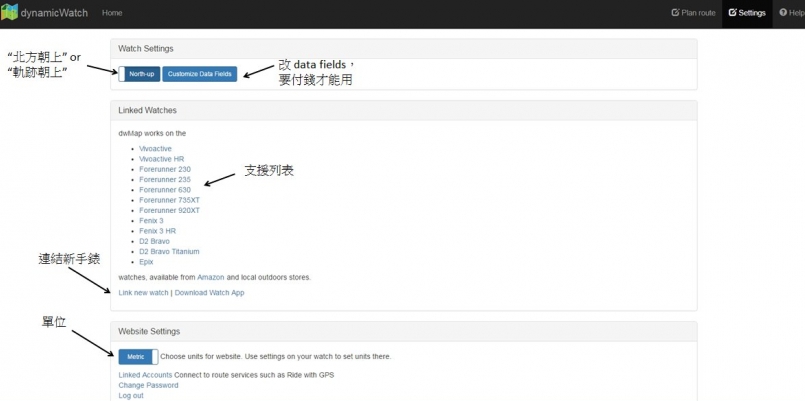 5. 接下來要做的就是把手錶跟 dwMap 這個程式連結在一起了,選擇「link your watch」之後,會先進入手錶設定頁面