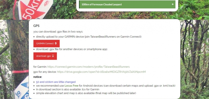 這裡提供跑山獸的野獸山徑為例子給大家參考,Petre 就有提供 Garmin 的檔案以及 GPX 的檔案給大家下載,Garmin Connect 方式怎麼使用,一樣下次講~GPX 檔下載來,就可以用 dwMap 的方式來上傳到手錶~