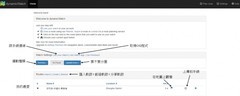 好了以後就加到我的最愛,就可以回到主畫面,選擇上傳了(圖片來源:Garmin)