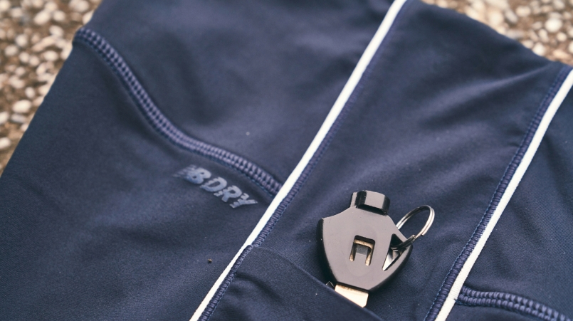 由於我天天都得騎車通勤,跑步的時間大多安排在下班後,會在機車車廂裡備上一套跑步裝備,下班後換上衣服,總會煩惱機車鑰匙要放哪,所以跑褲有口袋是一件很加分的事情,像這件透氣拼接運動九分褲兩邊都有口袋,參賽時則可以放下小包裝的能量膠或是能量棒,十分實用又貼心~