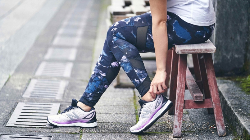 NB DRY 系列:Women Run Taipei 花紗運動短袖上衣 NT$ 1,080;女性訓練印花緊身褲 NT$ 2,480(圖片來源:Raymond)
