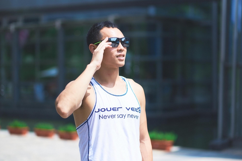 菁英選手謝漢霖,除了鐵人選手這個身份外,還開起鐵人用品專賣店,提供想投入賽事的民眾訓練平台,甚至是運動裝備販售一手包辦,建立完善一條龍服務。夏日即將到來,擁有豐富鐵人經驗的謝漢霖也與跑友分享關於夏天運動時挑選運動太陽眼鏡的心得!(圖片來源:Bryan 劉光宇)
