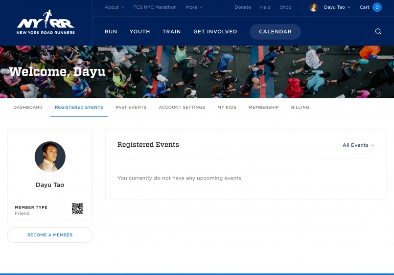 登入紐約馬賽事(New York Road Runner)的個人頁面,點選"Registered Events",截圖此頁並寄信到 [email protected]