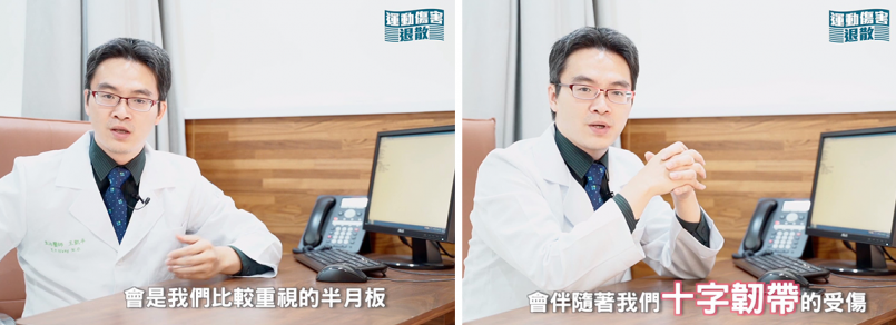 - 以膝關節傷害來說,醫生們較為重視的會是半月板。半月板就像是我們關節中的墊片,隨著年紀的增長,長期使用會造成它的磨損,所以如果在跳躍、落地的過程中有不穩的現象,就有可能造成半月板的擠壓受傷,或是有拐的動作,也有造成半月板撕裂傷的機率。