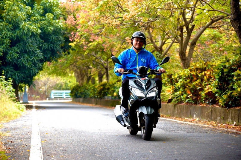 田中馬拉松將於 11 月 10 日登場,賽道設計師梁弘毅,騎著 PGO 機車巡視賽道狀況(圖片來源:筆記實業)