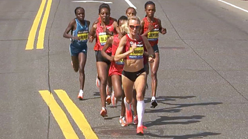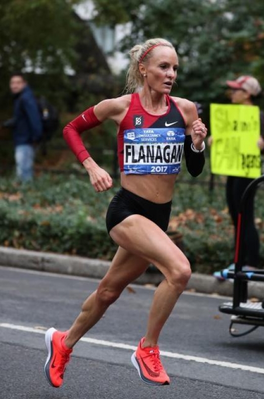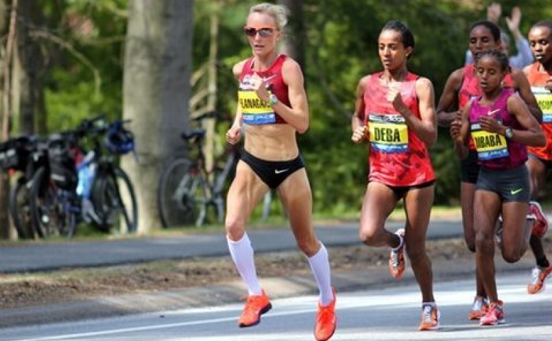 比賽上,Flanagan 遠遠甩開抱團前進的非洲選手,孤獨領跑了19 英里,直到 Rita Jeptoo 在最後 4 英里發力超過了她。最終,她跑出了 2:23:00,刷新了個人最好成績,但僅排名第七。
