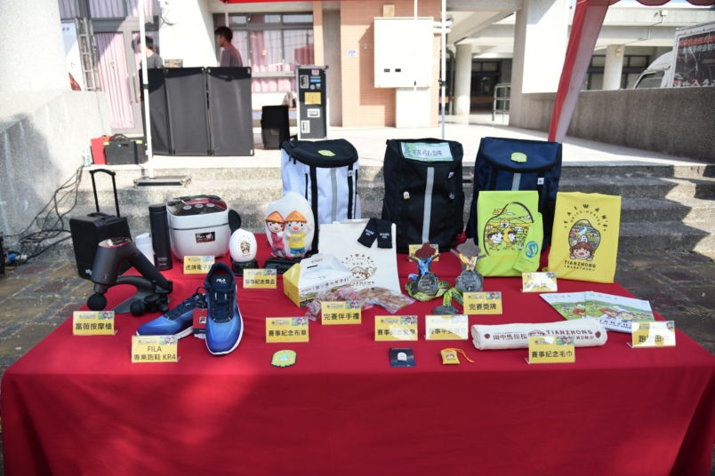 記者會現場展示田中馬拉松相關紀念品(圖片來源:筆記實業)