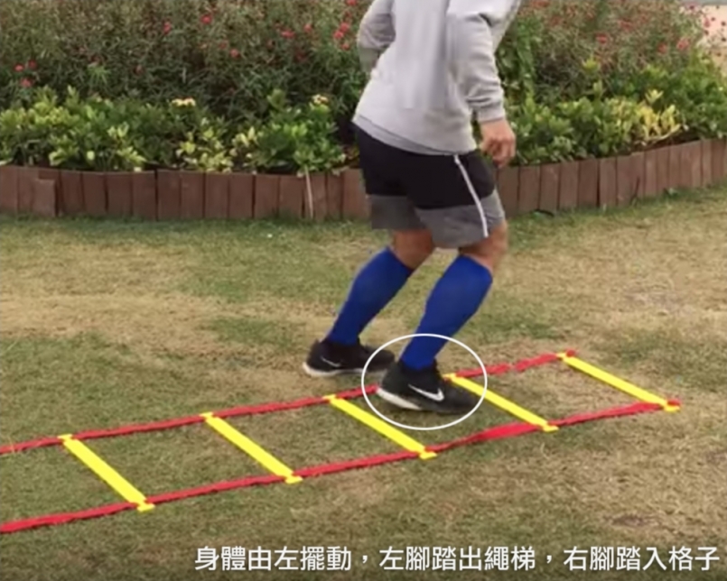 Step1. 身體側對繩梯,每一腳踩踏格子一次。