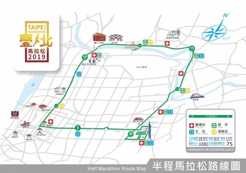 半馬組路線(圖片來源:2019 臺北馬拉松官方網站)
