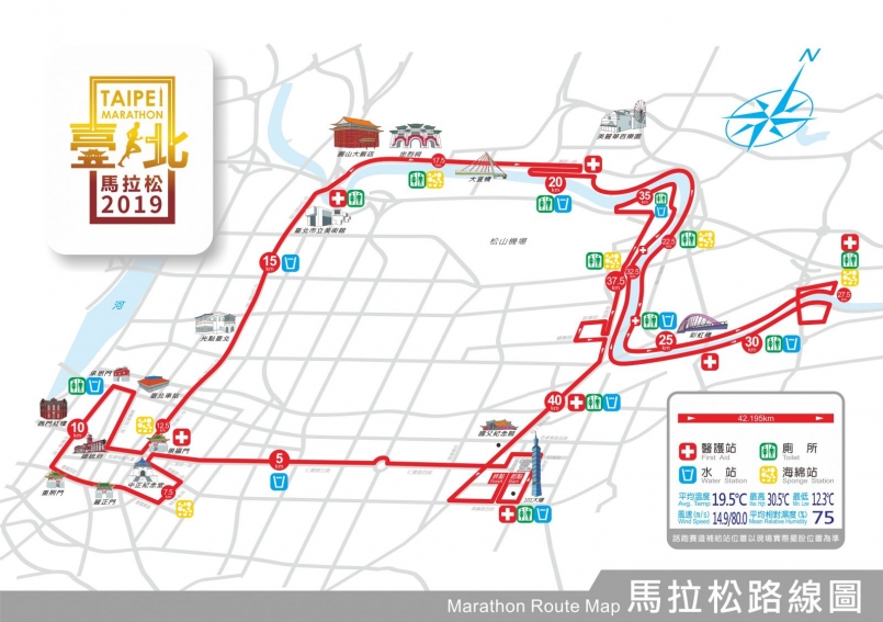 全馬組路線(圖片來源:2019 臺北馬拉松官方網站)