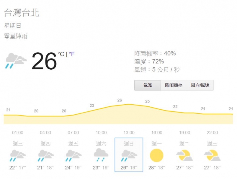 根據氣象預報目前顯示,星期日清晨到上午應為濕涼有雨的天氣,氣溫約在 19-26 度之間,提醒跑友務必做好防雨及保暖工作,賽後應盡速用毛巾擦乾身體,並換上替換衣物、外套、和長褲,以免感冒。其他像是跑步袖套、帽子等裝備都可以預先準備,視當天天氣實際狀況再決定是否使用。