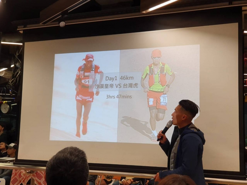 18 日分享會上陳彥博沒有提的是,約旦超馬賽第五天的最後 40 公里,其實是在右膝劇痛情況下撐完比賽,他分享會結束後苦笑道,「其實右膝痛到炸掉,幾乎沒力,後來檢查是內側腹韌帶發炎。」