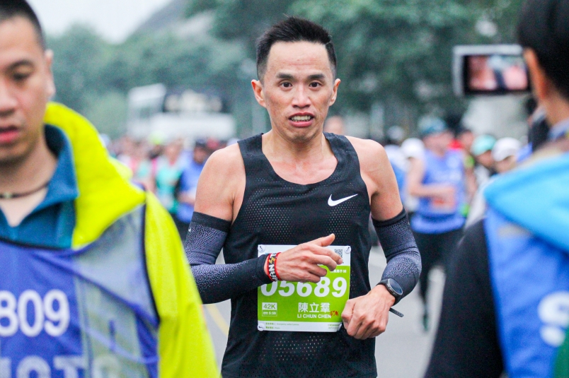 來自宜蘭的廚師跑者陳立羣以2小時36分48秒名列第三。(圖片來源:轉身)