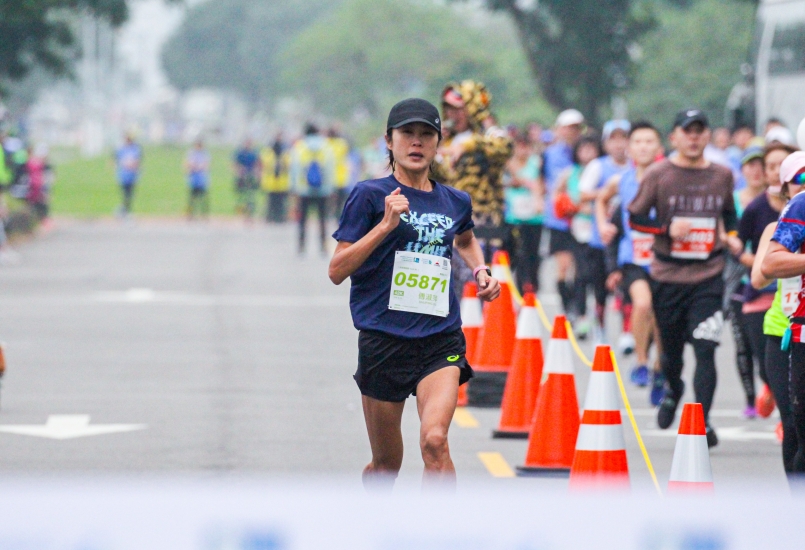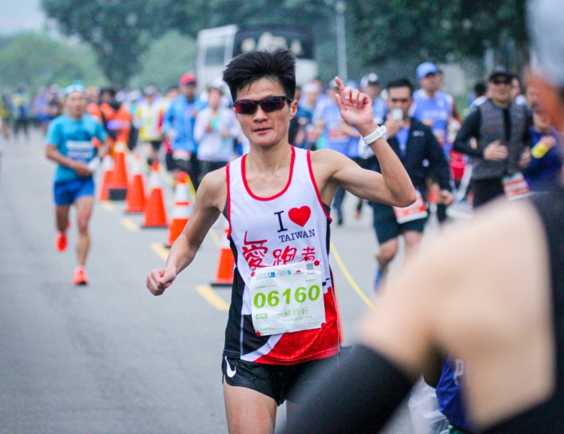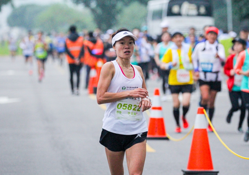 上個月在臺北馬獲國內第一的朱盈穎,今天依舊表現不俗以2小時59分48秒獲第四名,也是她在國內首次達到破3成就;去年10月全運會因大腿拉傷黯然退賽的她,透過積極復健治療,近期訓練狀況也逐漸回到先前水平。同樣享受菁英選手提前1分鐘出發的她笑笑地認為有好有壞,好處是有利區隔一般市民跑者,壞處則是沒有相對的配速可以跟啦。