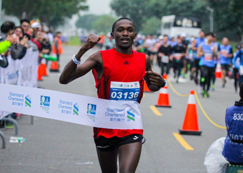 肯亞選手 FRANCIS KIOKO NYZOKI 在末段加速獨跑,以2小時26分26秒摘下冠軍。(圖片來源:轉身)