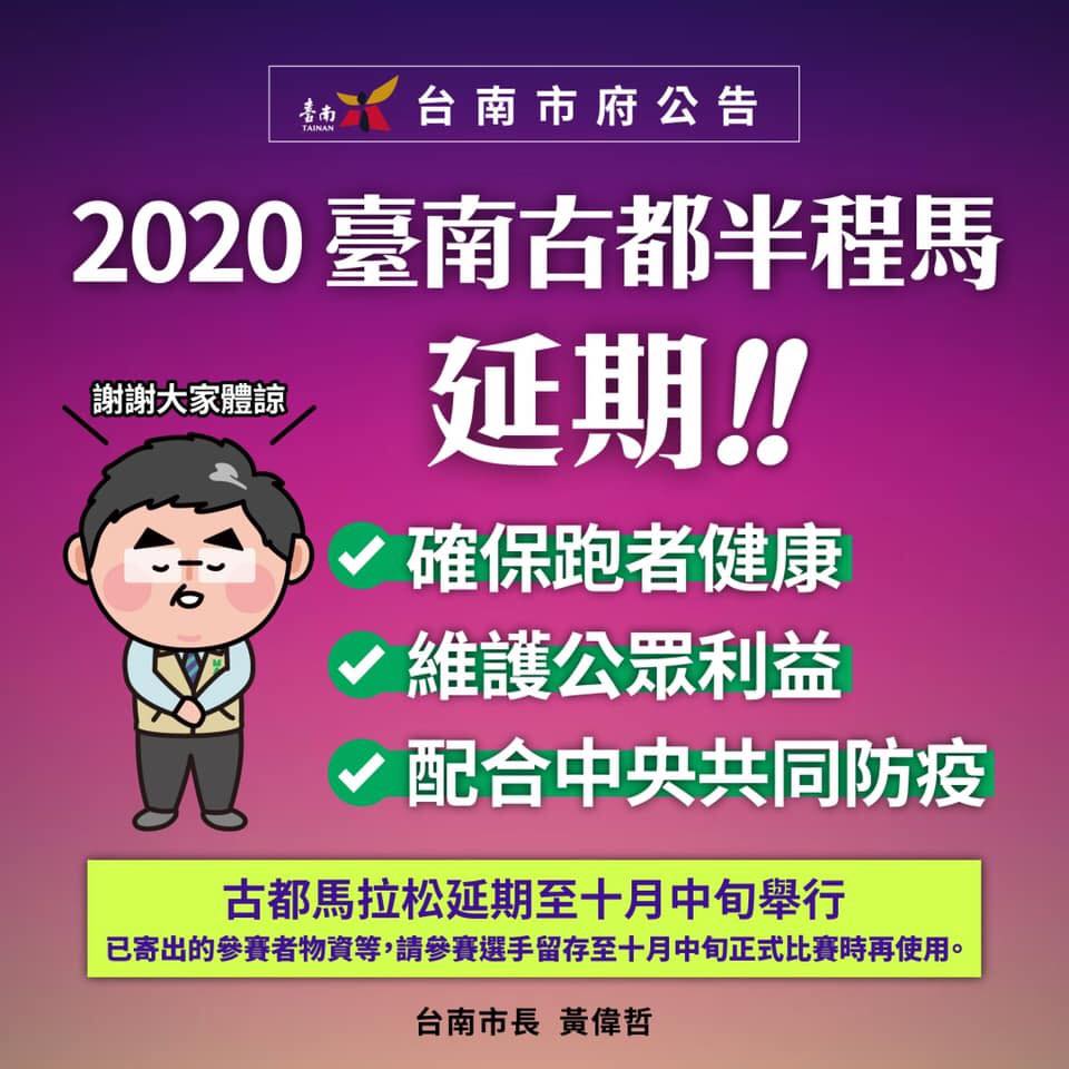 也請跑友留意並到2020臺南古都國際半程馬拉松的官網