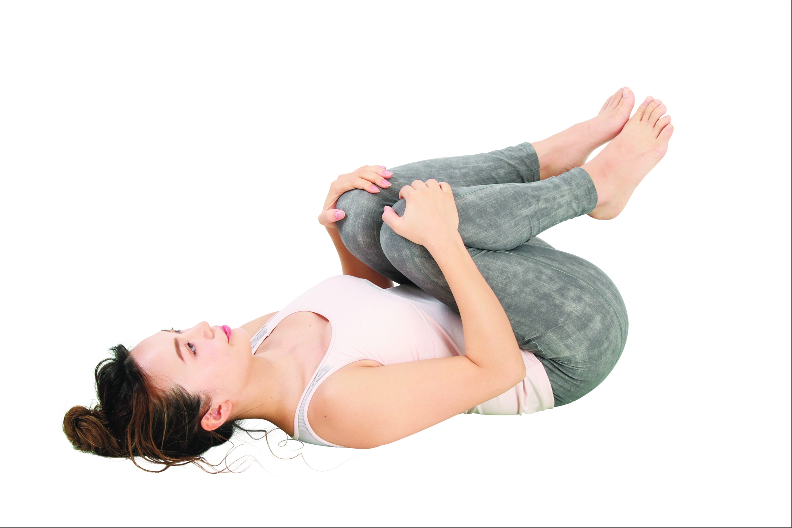 1. 呈仰躺姿勢,雙膝在胸前靠攏