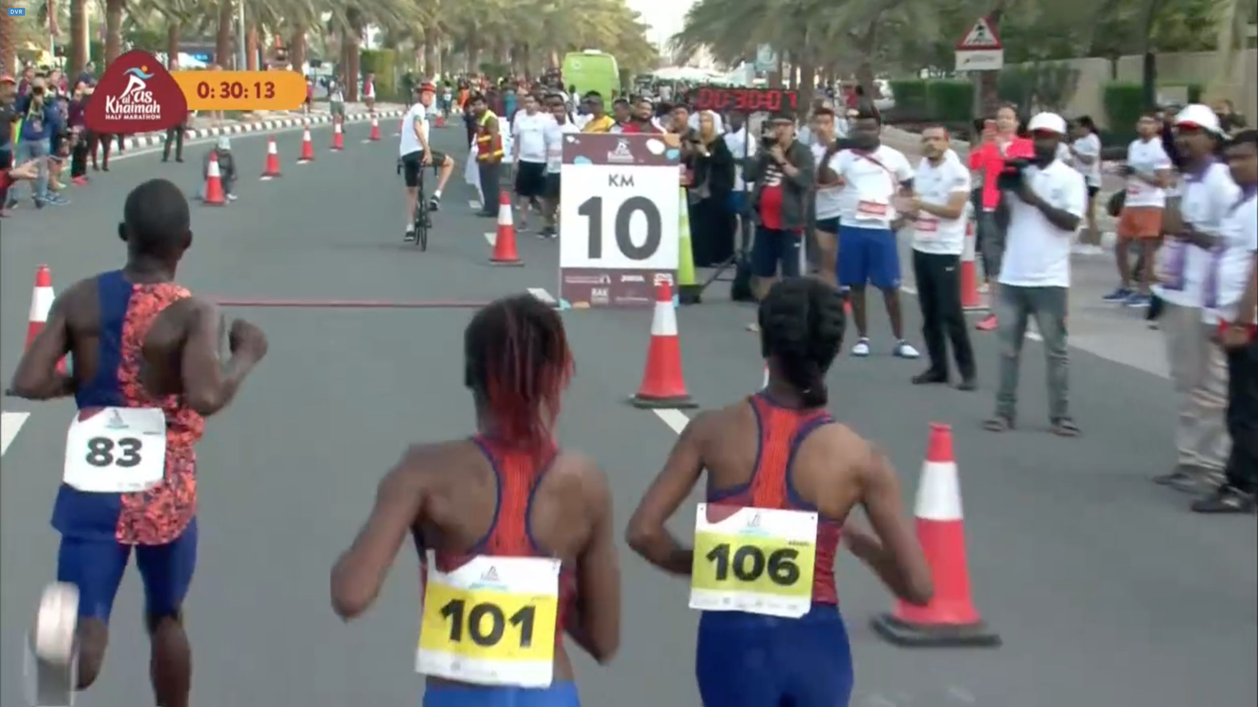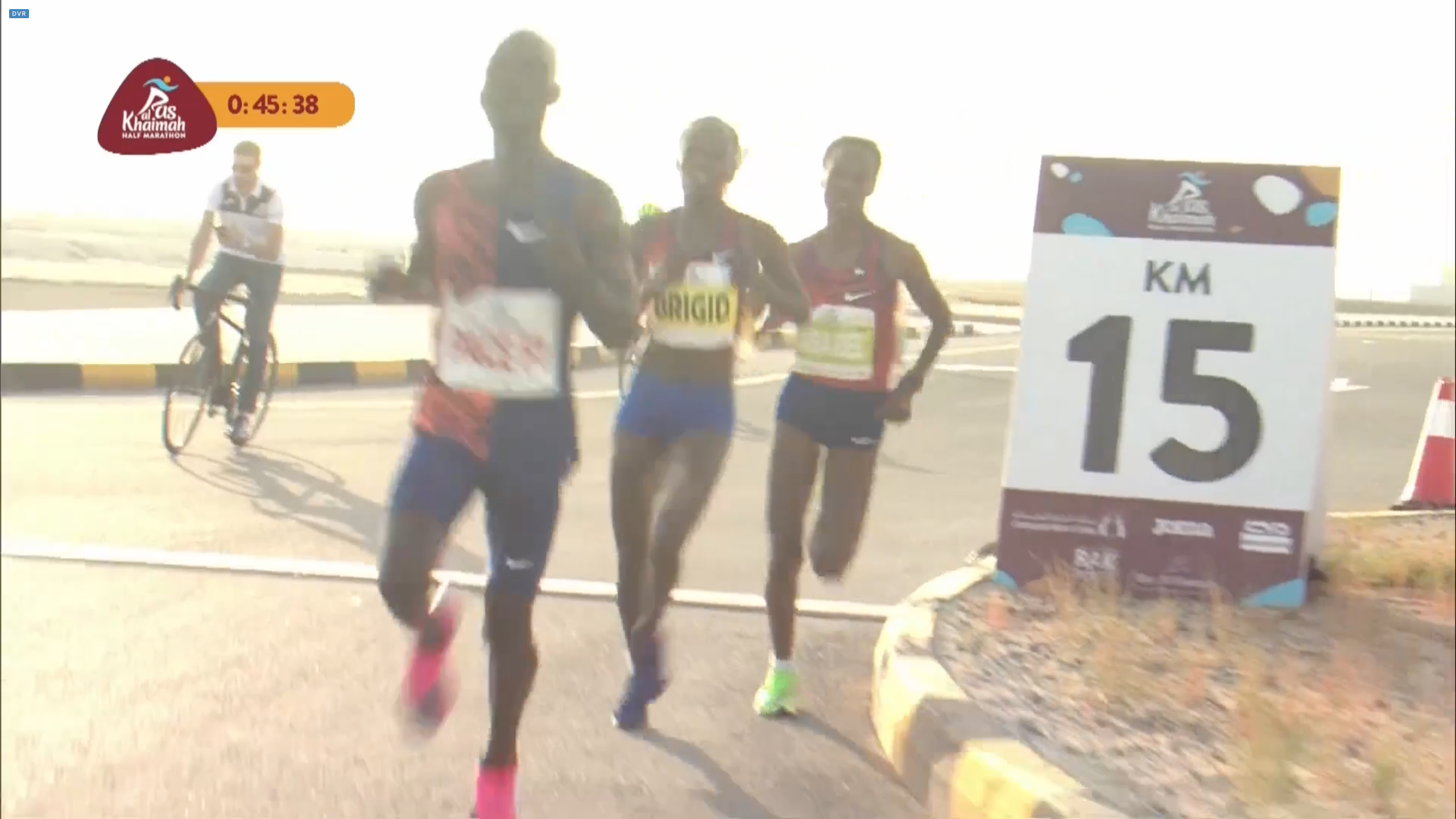 15公里左右伊索匹亞的 Alexendar Munyao 開始加速,男子領先集團開始崩解,一度取得40-50公尺的領先,然而肯亞的 Kibiwott Kandie 在 17公里左右後來居上並且逆轉;最終 Kibiwott Kandie 以 58:58 獲得冠軍,但因為前半配速過慢,錯失了賽道紀錄。