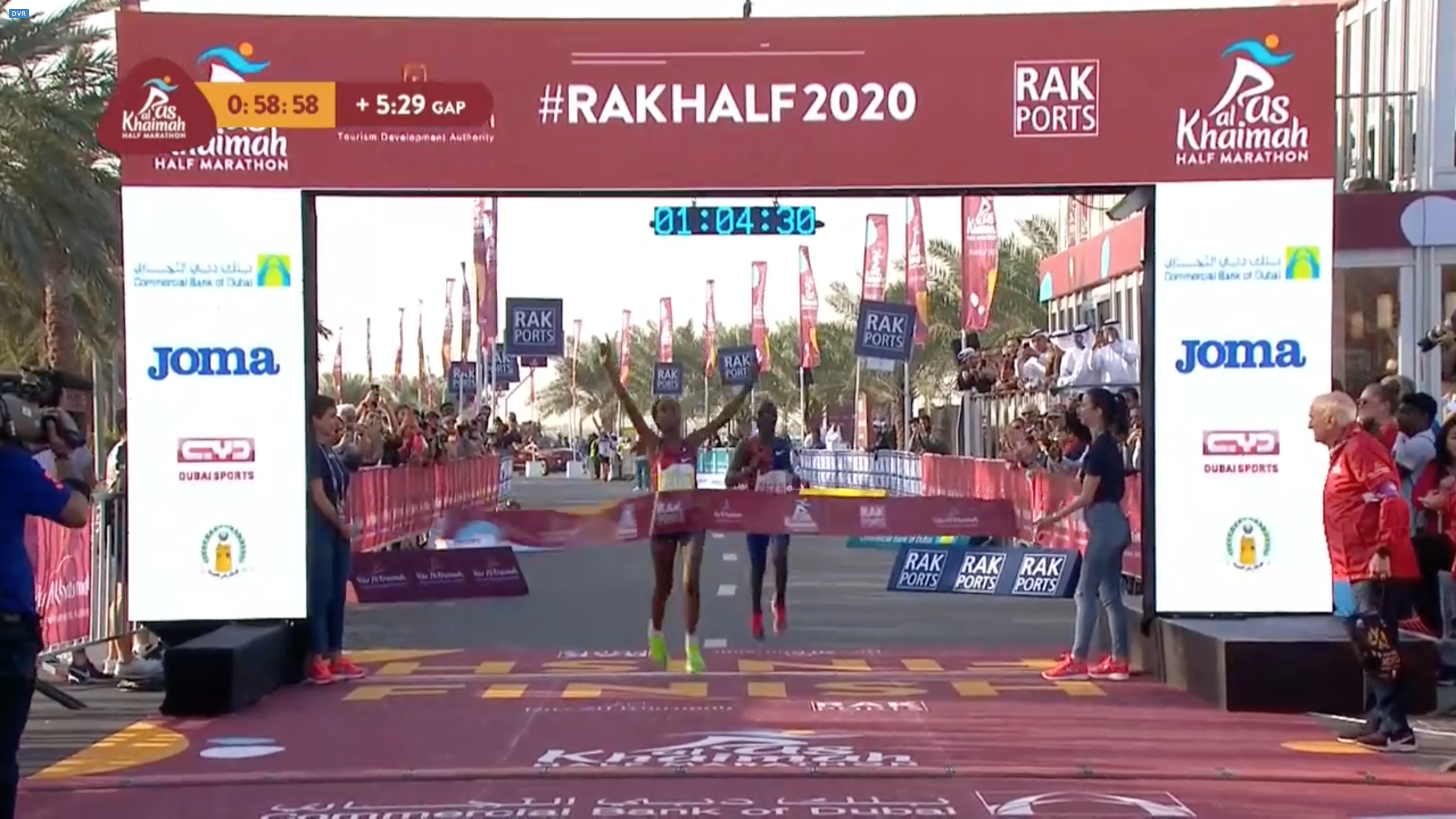 Ababel Brihane 和配速員不斷加速,以 1:04:31 衝過終點,打破世界紀錄 20 秒之多!馬拉松世界紀錄保持者 Brigid Kosgei 以 1:04:49 獲得第二,也超越前世界紀錄!
