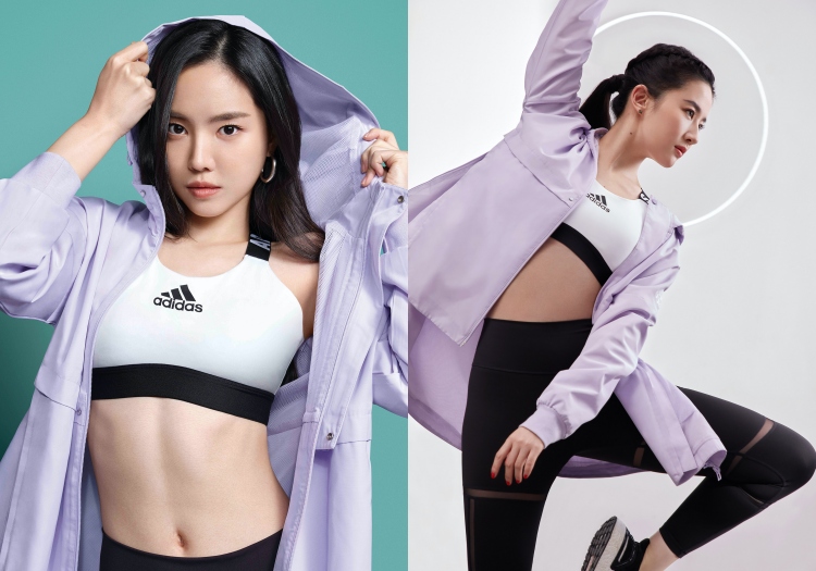 adidas全新代言人、擁有「孫女神」稱號的韓國知名女團 Apink 成員孫娜恩,聯手「神仙姐姐」劉亦菲以白色經典logo印花運動內衣搭配legging,大秀小蠻腰與逆天長腿,展現完美曲線;外著薰衣草紫的WindBreaker外套,散發浪漫春日氣息,前短後長的斗篷式設計則可修飾身形,活力中帶點女人味,展現女神級運動新時尚。