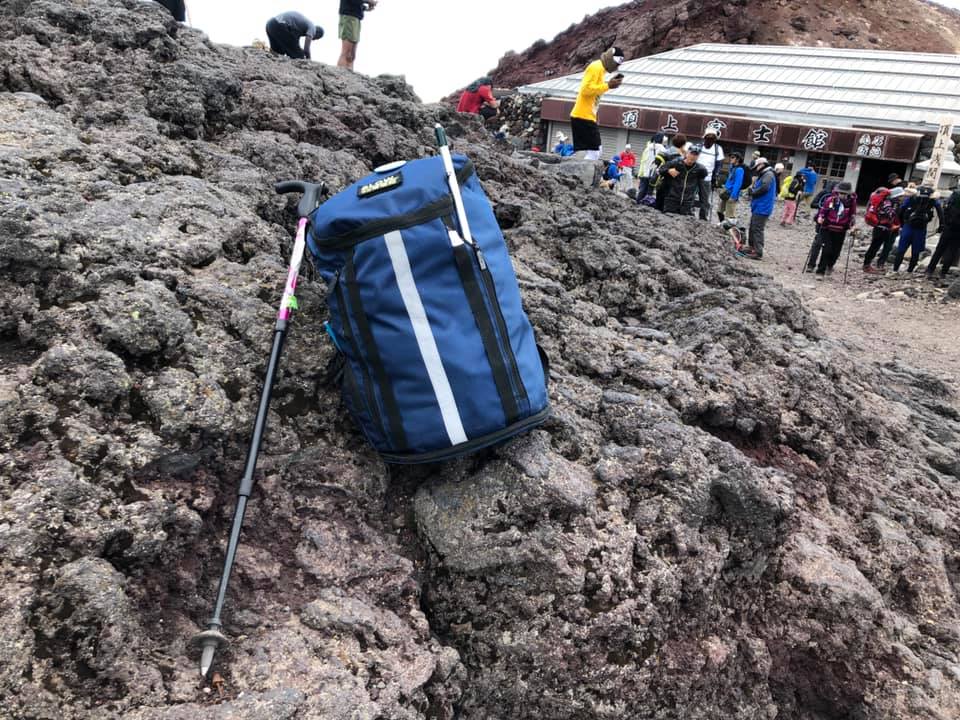 登頂也要和裝備包拍照(圖片來源:跑友詹智翔提供)