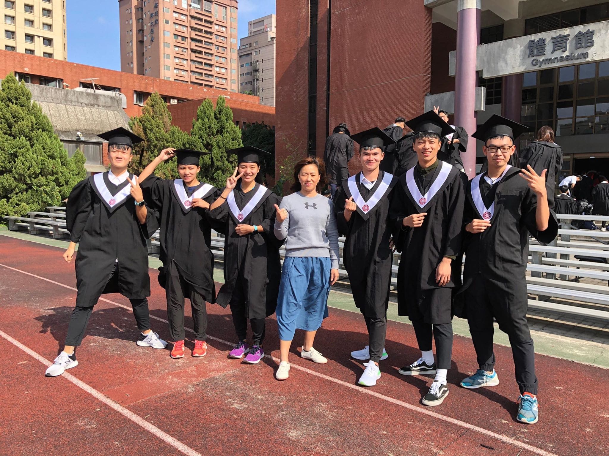 臺師大田徑隊應屆畢業生與林淑惠教練 (左 4) 。(圖片來源:羅珮慈)