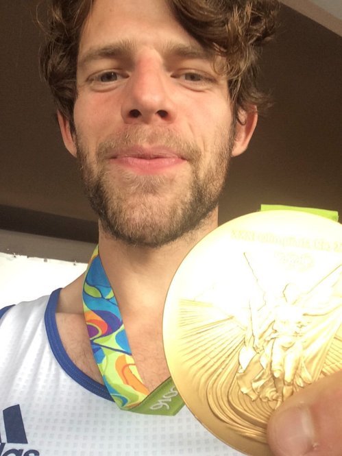 藍斯利在推特上秀出自己的里約奧運金牌。/圖 截自藍斯利推特