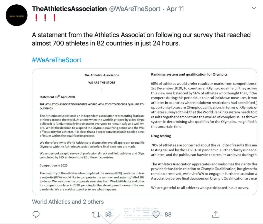 回顧過去兩個月,新冠肺炎疫情的全球迅速蔓延超乎想象,從 3 月 24 日奧運延期到 2021 年的消息宣布以來,到現在就已經過去了 20 天,世界田徑又發佈了暫停奧運資格賽的消息,新冠肺炎導致的奧運延期對全世界運動員的影響越來越大!