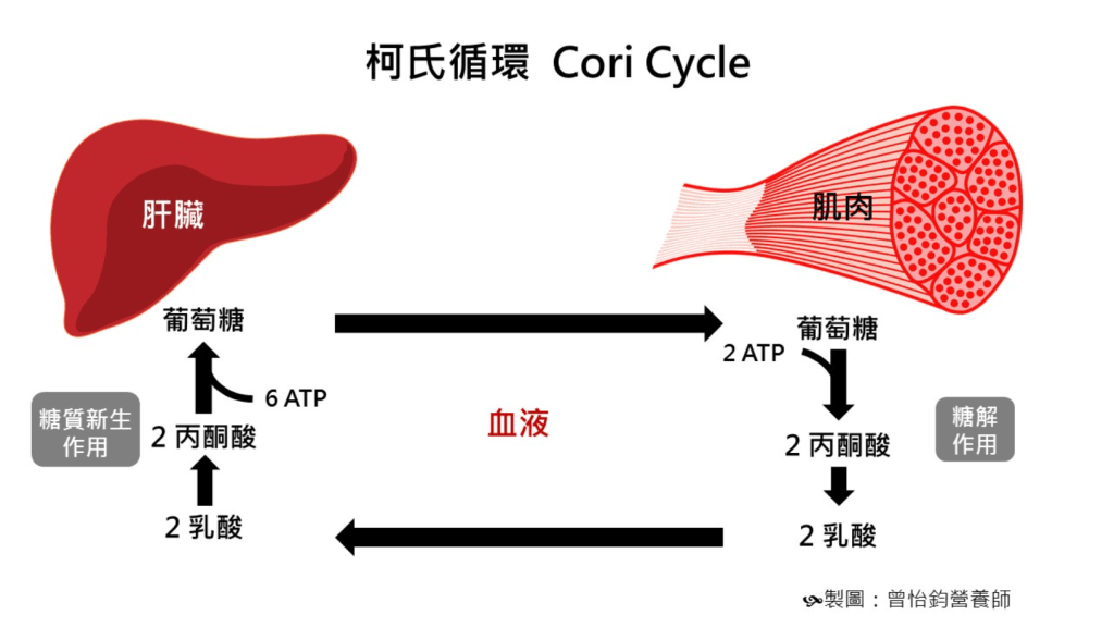 這些肌肉可以將乳酸鹽轉換回丙酮酸並將其送到檸檬酸循環並進入電子傳遞鍊在有氧的狀態下進行有氧代謝產生能量(ATP)。因此,Lactate在運動期間可作為骨骼肌的燃料來源,也是心臟、腦、腎臟和肝臟可用的燃料來源!