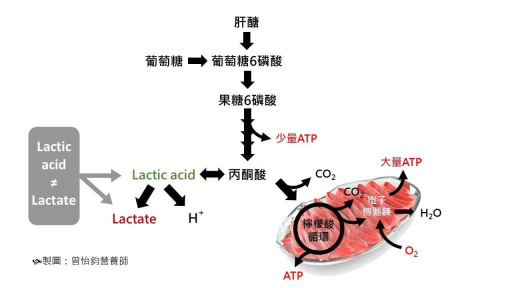 以往認為乳酸是無氧性激烈運動下的產物,因為在高強度下運動時,我們無法及時提供電子傳遞鍊足夠濃度的氧氣,積聚的丙酮酸才會代謝成乳酸。