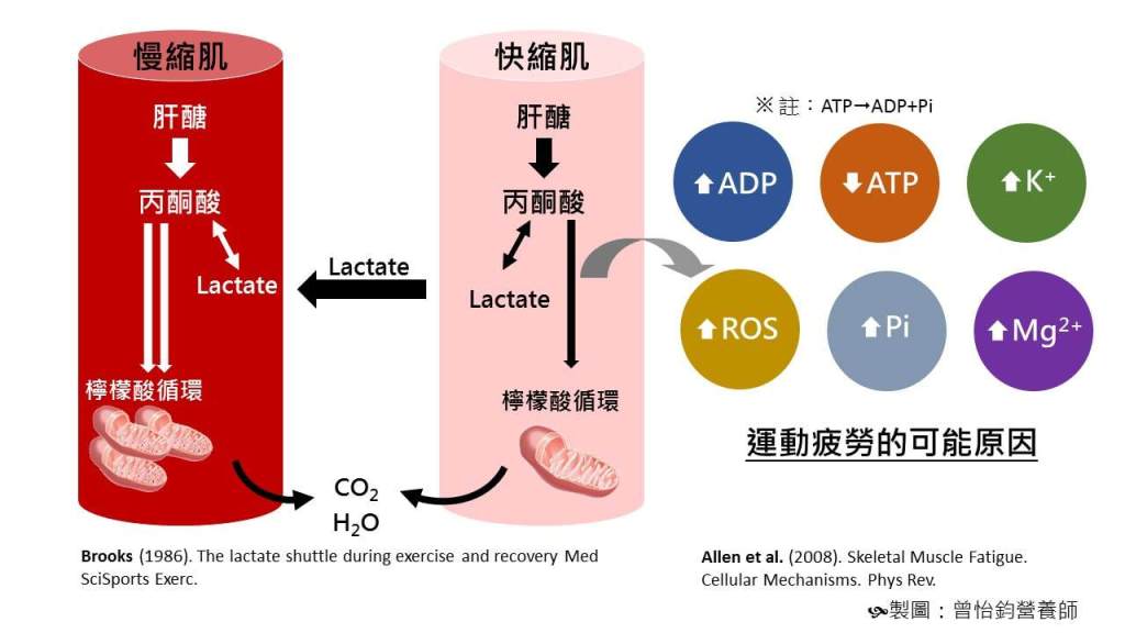 Lactic acid 肯定不會導致疲勞,而 Lactate 可以被人體回收利用,心臟、大腦和慢肌纖維能夠非常容易地從血液中清除乳酸,所以如果將快肌纖維產生的Lactate運送到慢肌纖維或另一個粒線體還未完全過載的肌肉中。