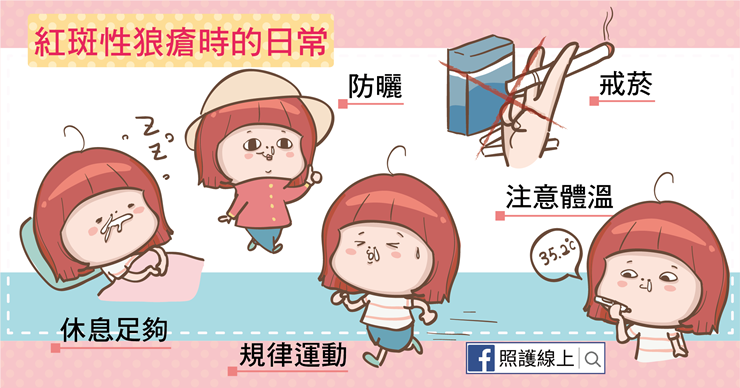 ● 如果覺得自己「燒燒的」,要注意量體溫,並找到發燒原因,看看究竟是感染了,還是紅斑性狼瘡復發了。