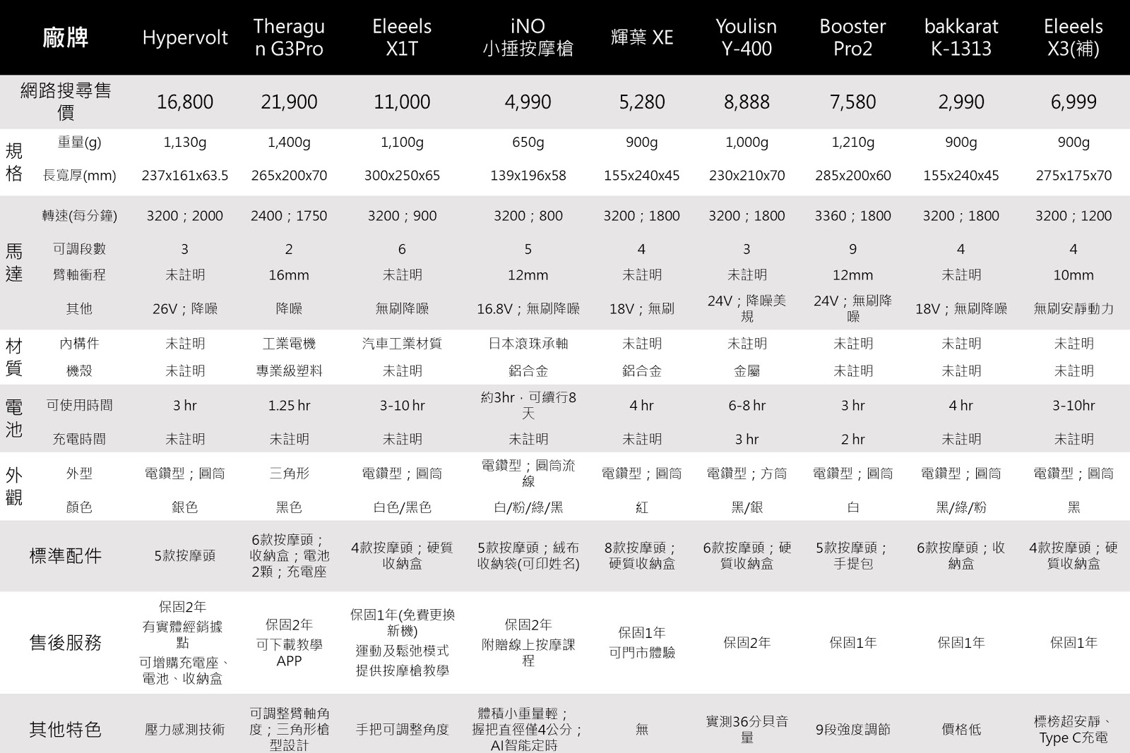 花了點時間,整理了幾支不同的筋膜槍or按摩槍給大家參考,先說說我的挑選標準:
