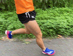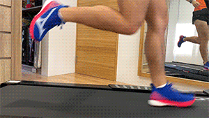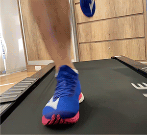 藉由跑步機上的慢跑以及加速到配速 3:20/k 下的慢動作攝影,可以發現雙腳的著地和輪轉非常輕快,前腳板著地後力量可以迅速回傳,再帶動腳抬起完成一次跑步的動作,並不會有其他鞋子在跑步機速度加快時,雙腳轉換跟不上輸送帶的速度,而有腳拖泥帶水的感覺。