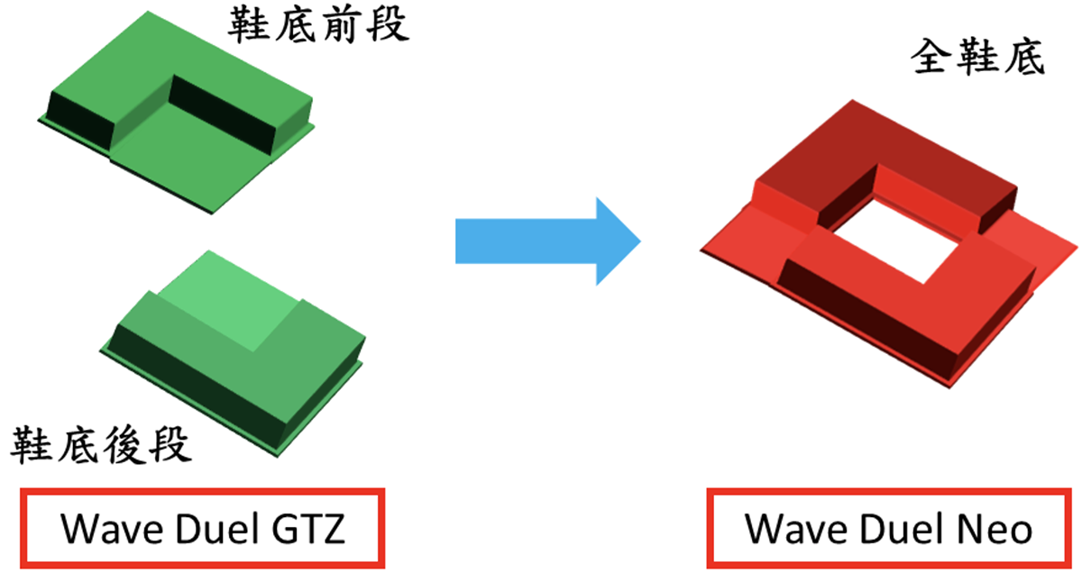 同樣的尺寸,MIZUNO Wave Duel Neo 在加入新的中底素材Enerzy之後,重量比上一代 MIZUNO Wave Duel GTZ 稍微重了10公克,不過和上代皇速3相比,仍然可看出在輕量化下了功夫。