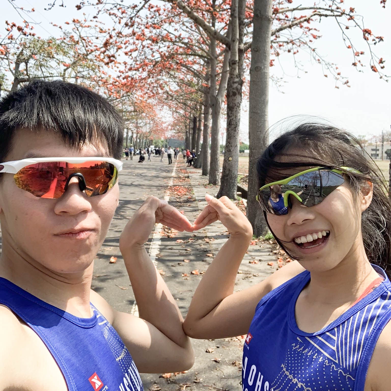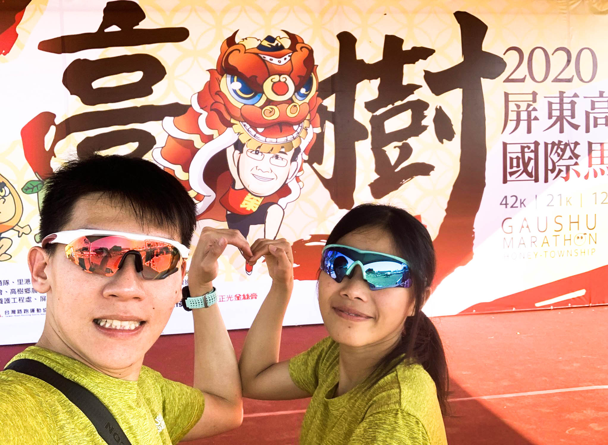尤其有一年,在這一場跑出了極為接近半馬 pb 的成績,那一次柏勳陪著我穩穩的配速完賽,我們在路途上比的愛心照,後來還特別洗出來好好收藏著!