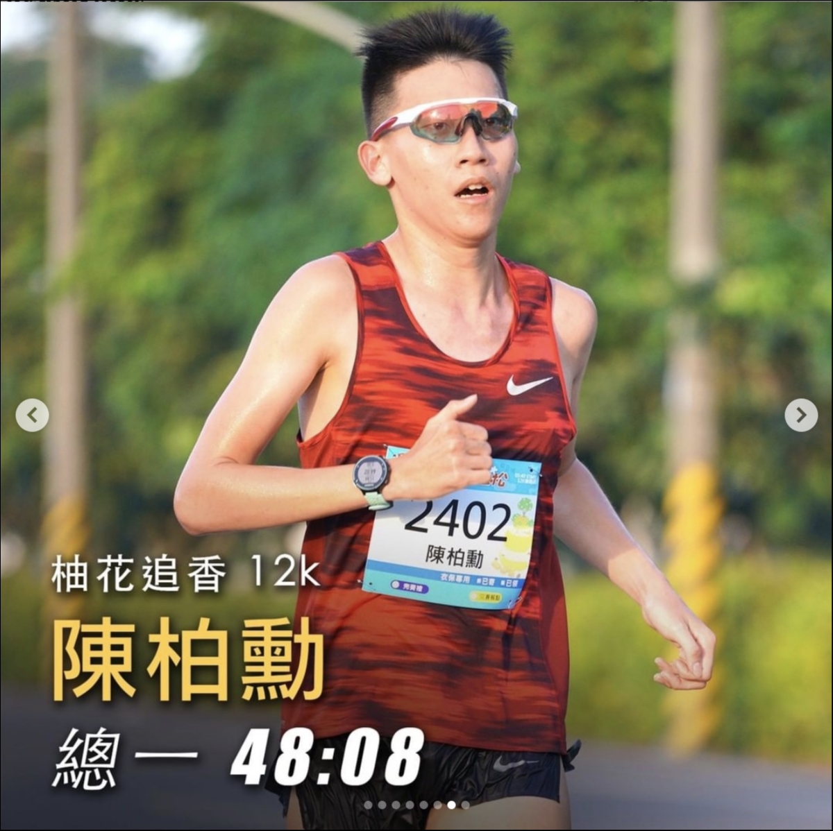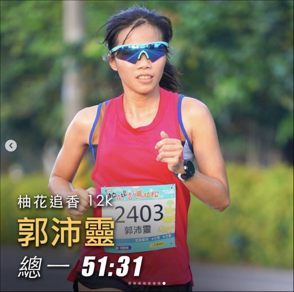 在柚花追香麻豆場中,這一對成大情侶檔直接包辦 12k 組男女冠軍(來源:運動筆記IG)