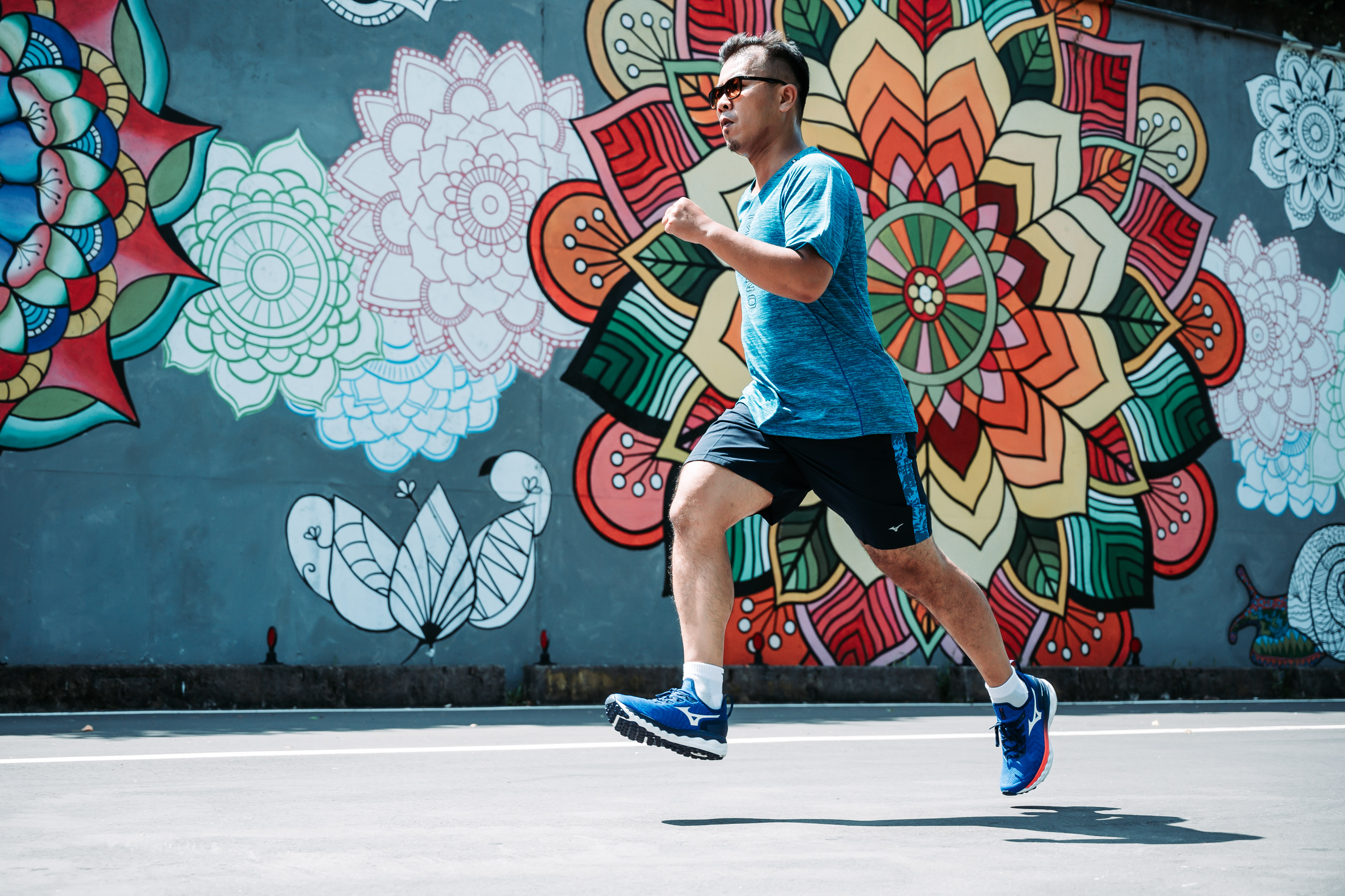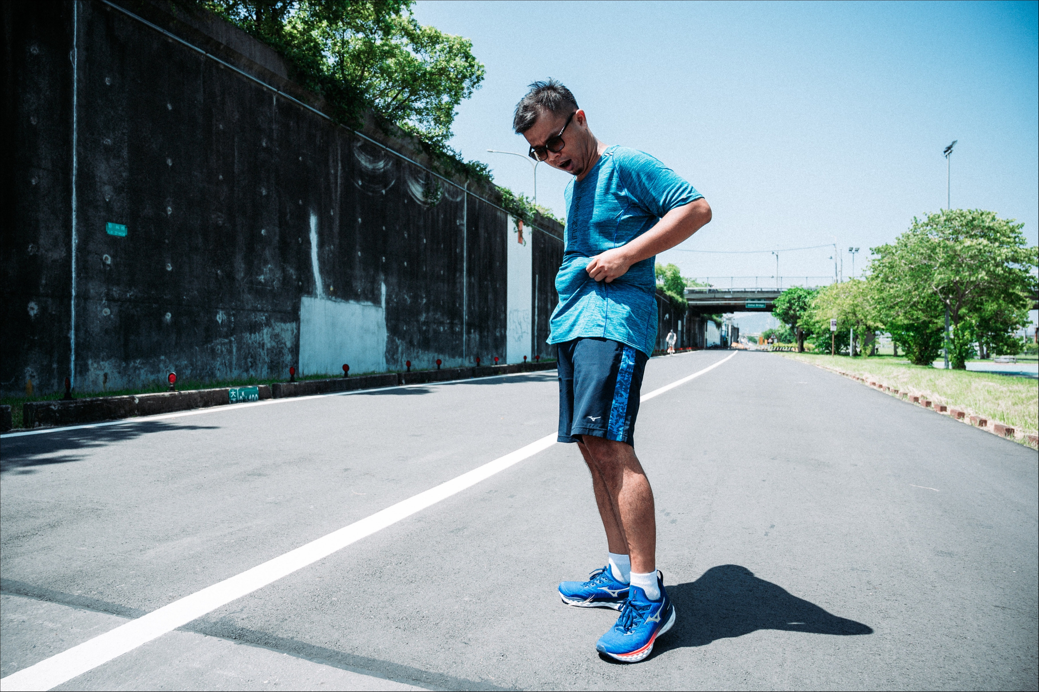 MIZUNO WAVE SKY NEO 的回彈效果,讓我的每一步都分外的輕盈,原來胖子也有春天。(圖片來源:千鹿影像)
